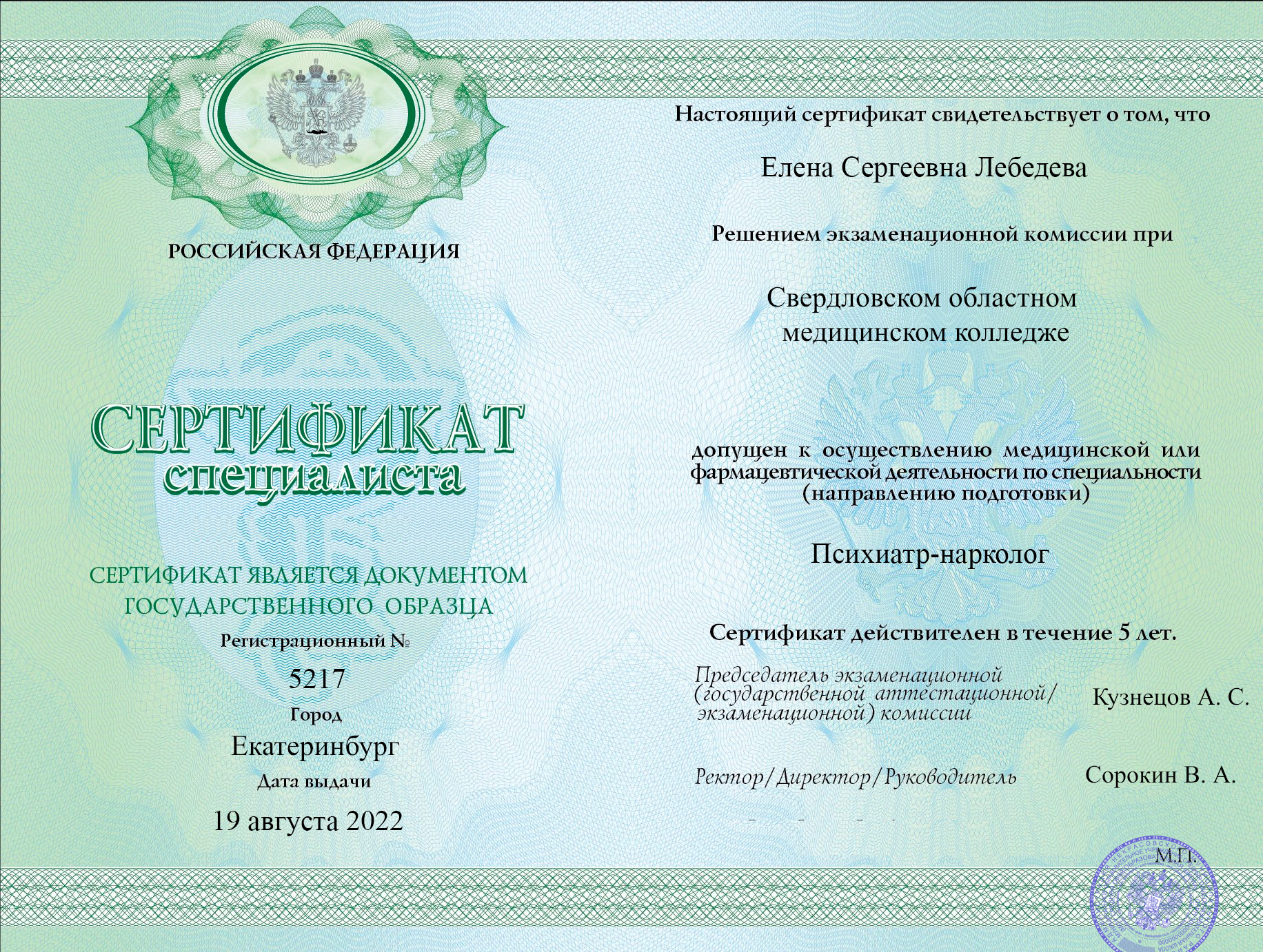 Елена Сергеевна Лебедева врач нарколог клиники доктора Стукаловой в Березовке